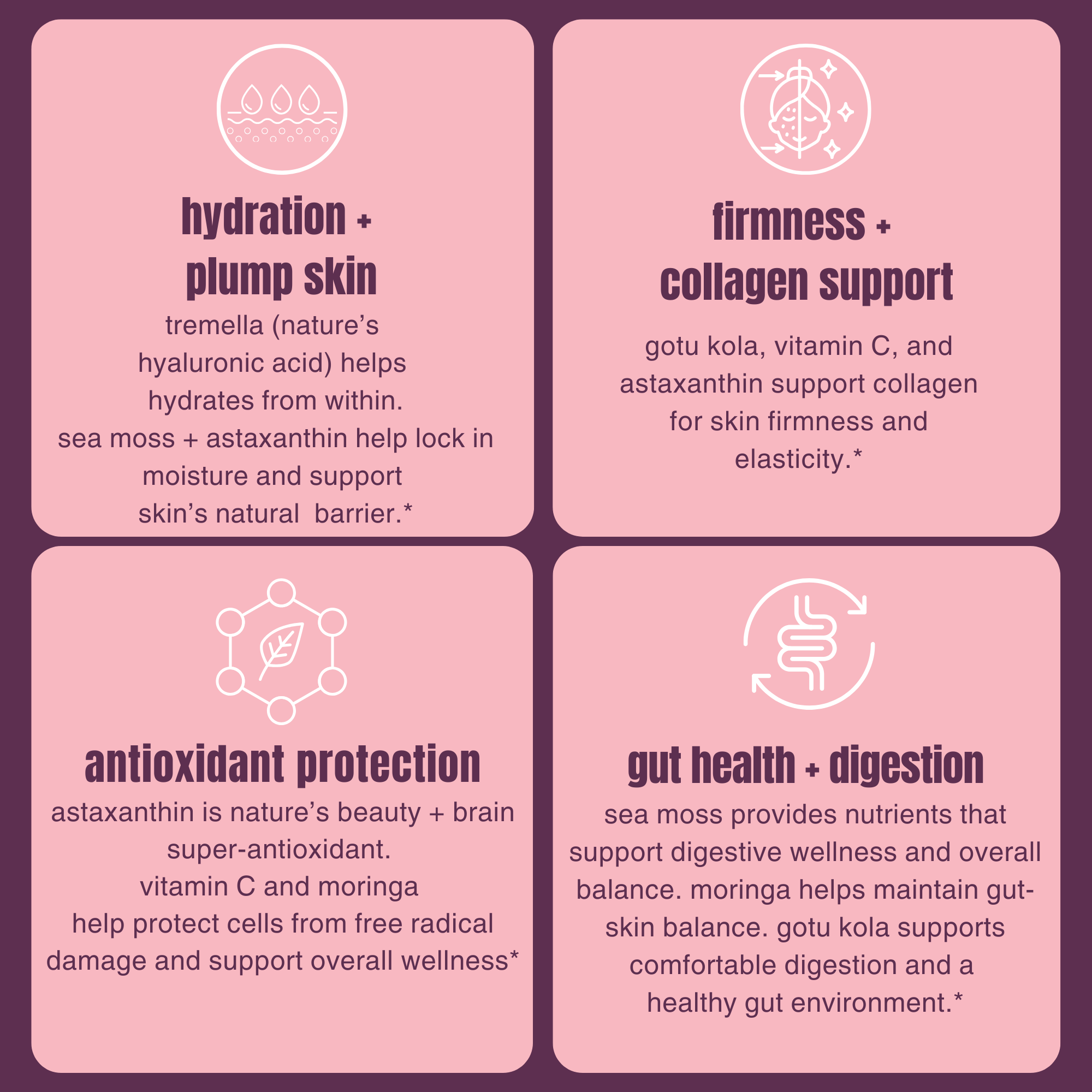 I’ve tried sea moss before, but this combo with moringa and astaxanthin is a game-changer. My skin looks healthier and more hydrated.” - Denise S.